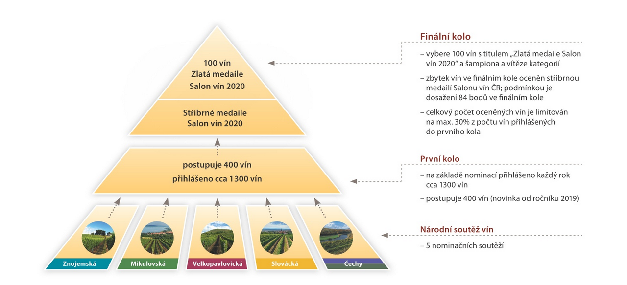 Budoucí Šampion a každý držitel titulu Zlatá medaile Salonu vín 2020 tak musí postupně projít třemi koly profesionálního hodnocení držiteli mezinárodních degustačních zkoušek dle evropských ISO norem, což zaručuje objektivitu a vysokou úroveň celé soutěže. I díky tomu je Salon vín – národní soutěž vín výkladní skříní českého a moravského vinařství. Titul Šampiona je pravděpodobně nejvyšší dosažitelnou metou pro víno v České republice. Prestižní ocenění zlatými a stříbrnými medailemi jsou pak nezpochybnitelnou garancí vysoké kvality vín.